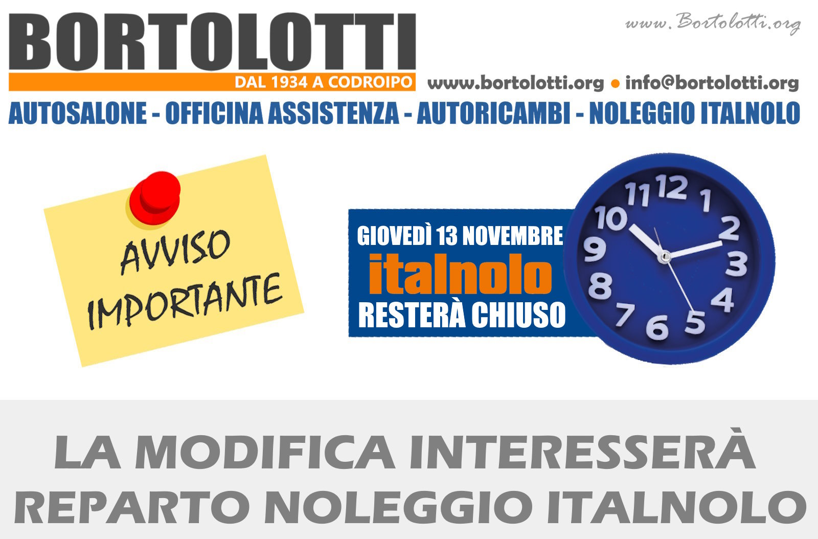 Chiusura straordinaria Italnolo giovedì 13 novembre